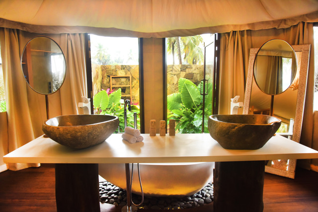 Kolaya SuiteKolaya Suite guarantees you absolute privacy. With an overall footprint of 90 m2 (50 m2 indoor including an en-suite bathroom with bathtub, and 40 m2 of private furnished terrace and outdoor shower), a c. 800 m2 private lush garden with sun loungers, and a king-size bed, this is the perfect suite for a couple in search of intimacy in their own secluded garden.